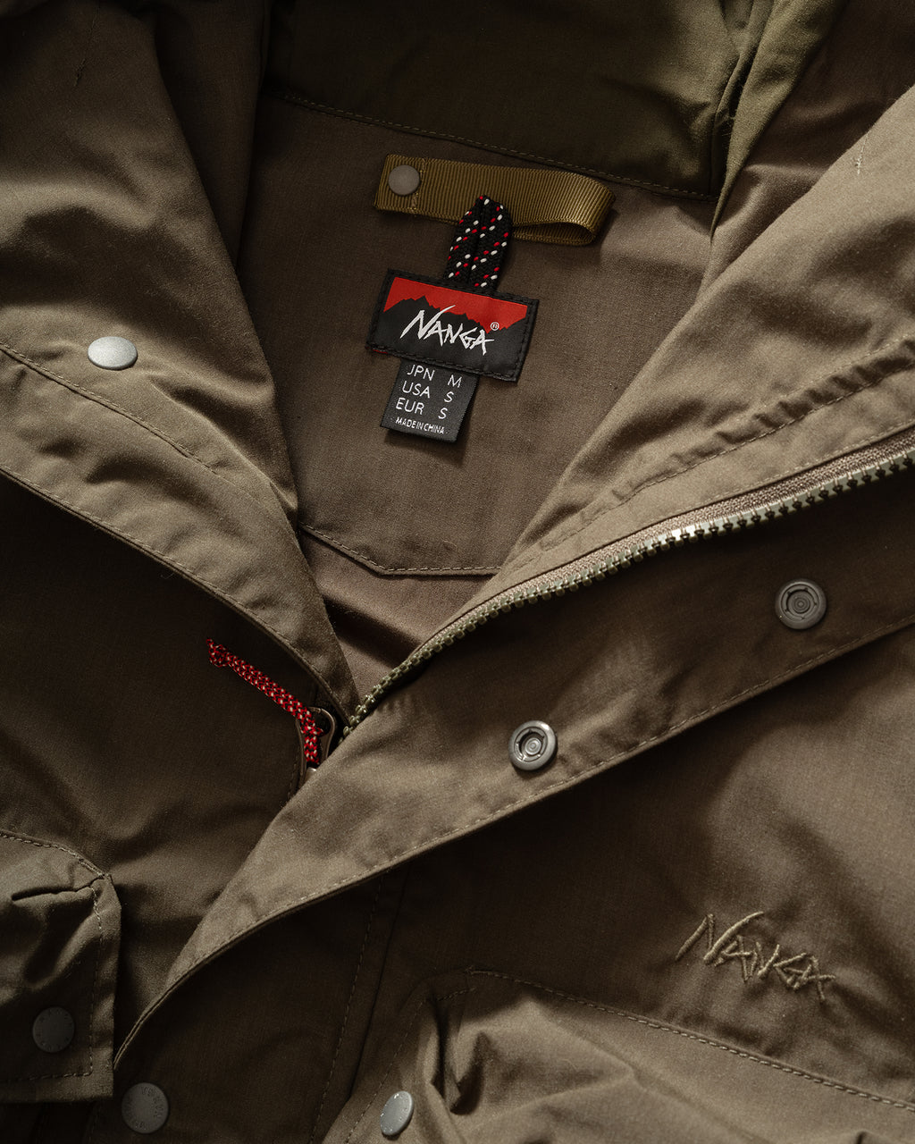 Crafted from a specially developed, durable fire-retardant polyester, the NANGA Hinoc Mountain Parka in Khaki is built for function and protection. It features six 3D pockets across the front and back, including four utility pockets and two zip pockets for secure storage. Additional details include a drawstring-adjustable hood, Velcro cuff fasteners, and a front zip with snap-button closure for comfort and ease in changing conditions.