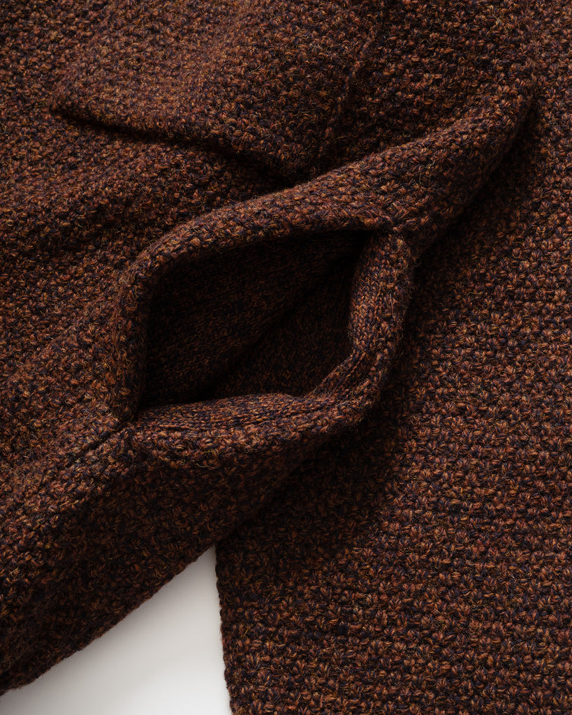 New additions, Still by Hand, known for its relaxed menswear that balances simplicity with meticulous detail. The 5G Knitted Blouson in Brown is crafted from a distinctive mixed-spun blend of British and French merino wool, offering a rich texture and natural warmth. Designed with a front zip closure, single chest pocket, and ribbed cuffs and hem for subtle structure. Cut in a relaxed, slightly cropped silhouette that balances comfort with a refined, tailored finish.