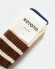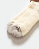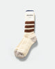 The Coarse Ribbed Old School Crew sock from ROTOTO is made from a thick pile of cotton yarn and a long pile for the sole to give added cushioning. Its tube shape and two-tone triple stripe give it an old-school appearance.