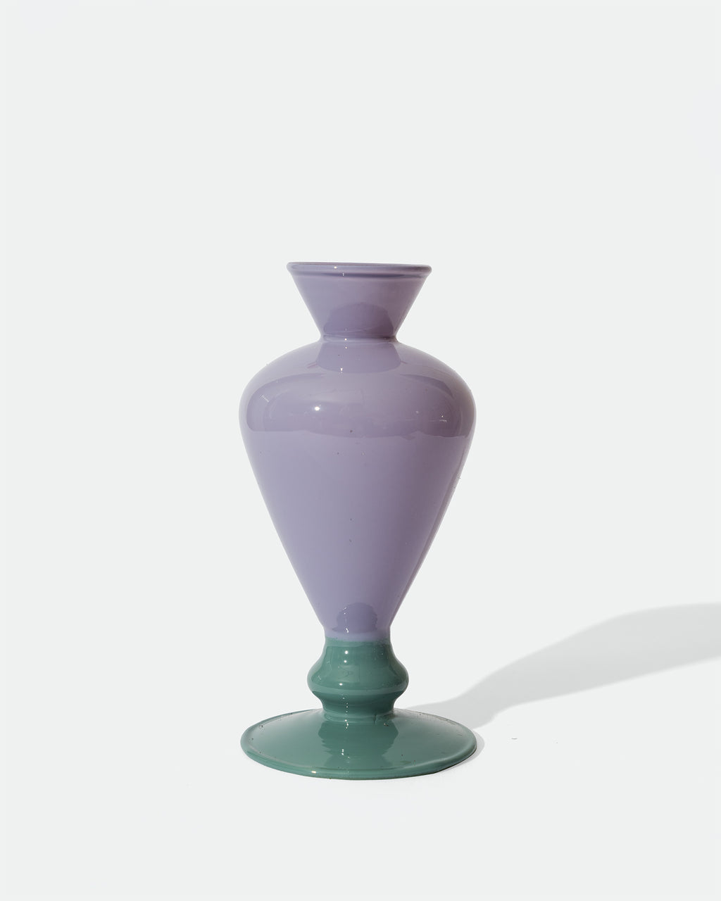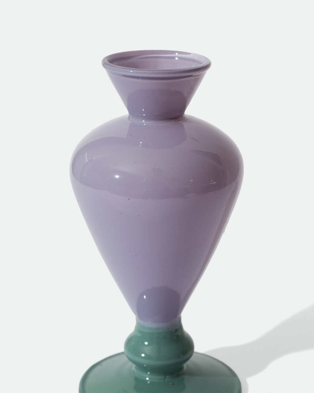 The Two Tone Mini Vase by Amabro is a flower vase that has a two-tone baked-on paint finish. Used as a delicate decorative piece or paired with flowers, its compact size allows it to sit in various interior spaces.