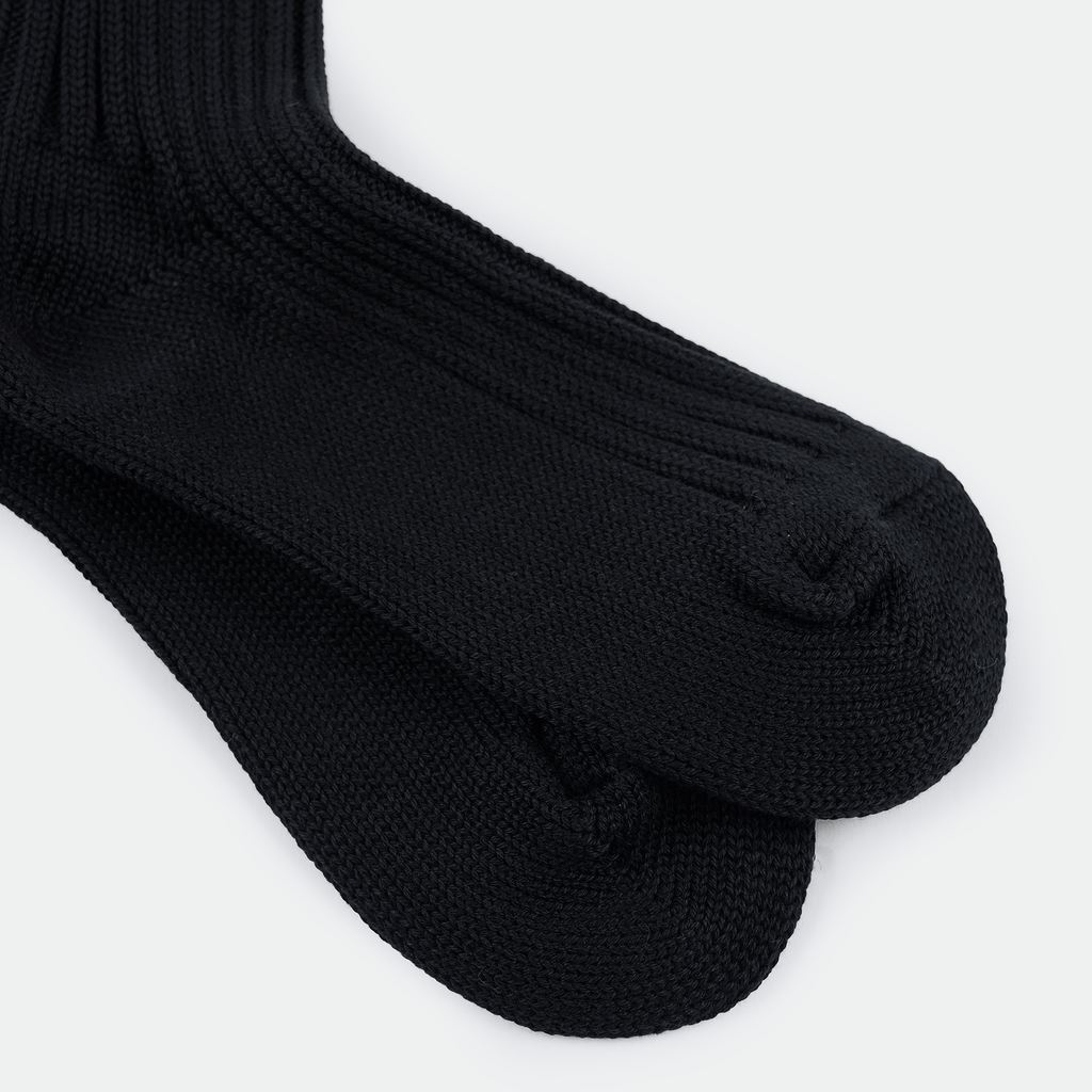 Decka's Black Organic Ribbed Socks are crafted from heavyweight cotton with five times the typical yarn, delivering premium quality that holds its shape and lasts a lifetime.