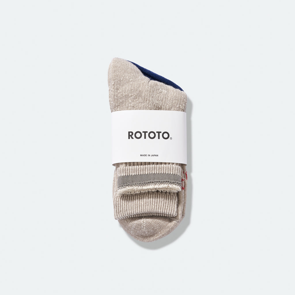 A new style by ROTOTO, the Double Face Mid Sock is designed to sit around the mid-ankle. Constructed using an organic cotton blend with a ribbed mid-length cuff and a loopback lining.